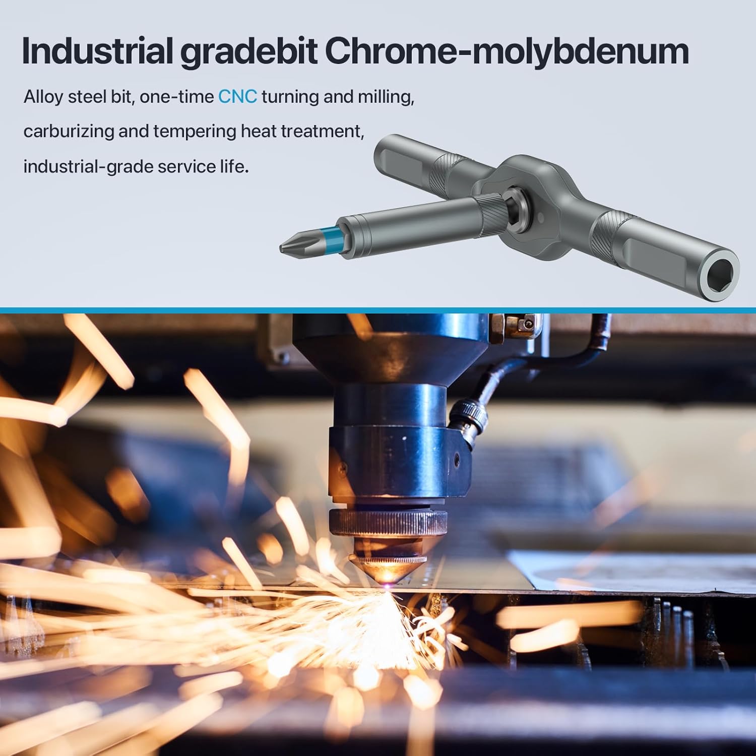 Chrome-molybdenum alloy steel bit, one-time CNC turning and milling, carburizing and tempering heat treatment, industrial-grade service life