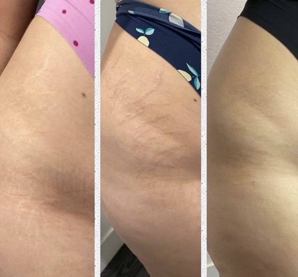 Collagen & Stem Cell Infusion: These key ingredients are responsible for restoring the skin’s natural collagen production, promoting skin regeneration, and improving elasticity, which helps visibly reduce the appearance of stretch marks and sagging skin.