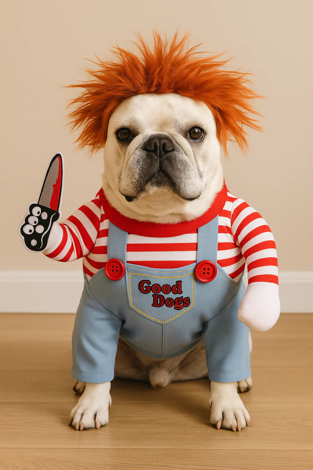 🐶 Includes a full outfit + wig + plush toy knife prop