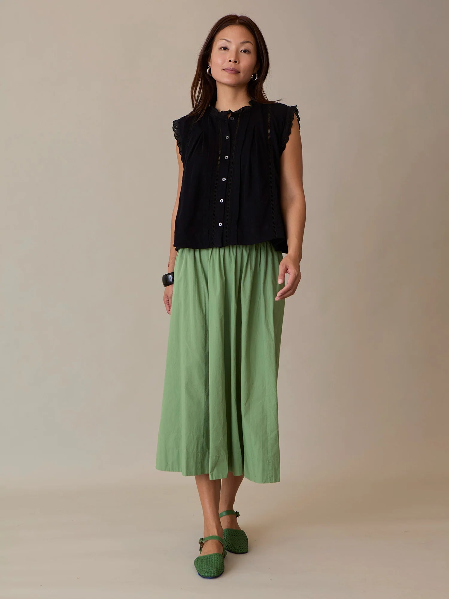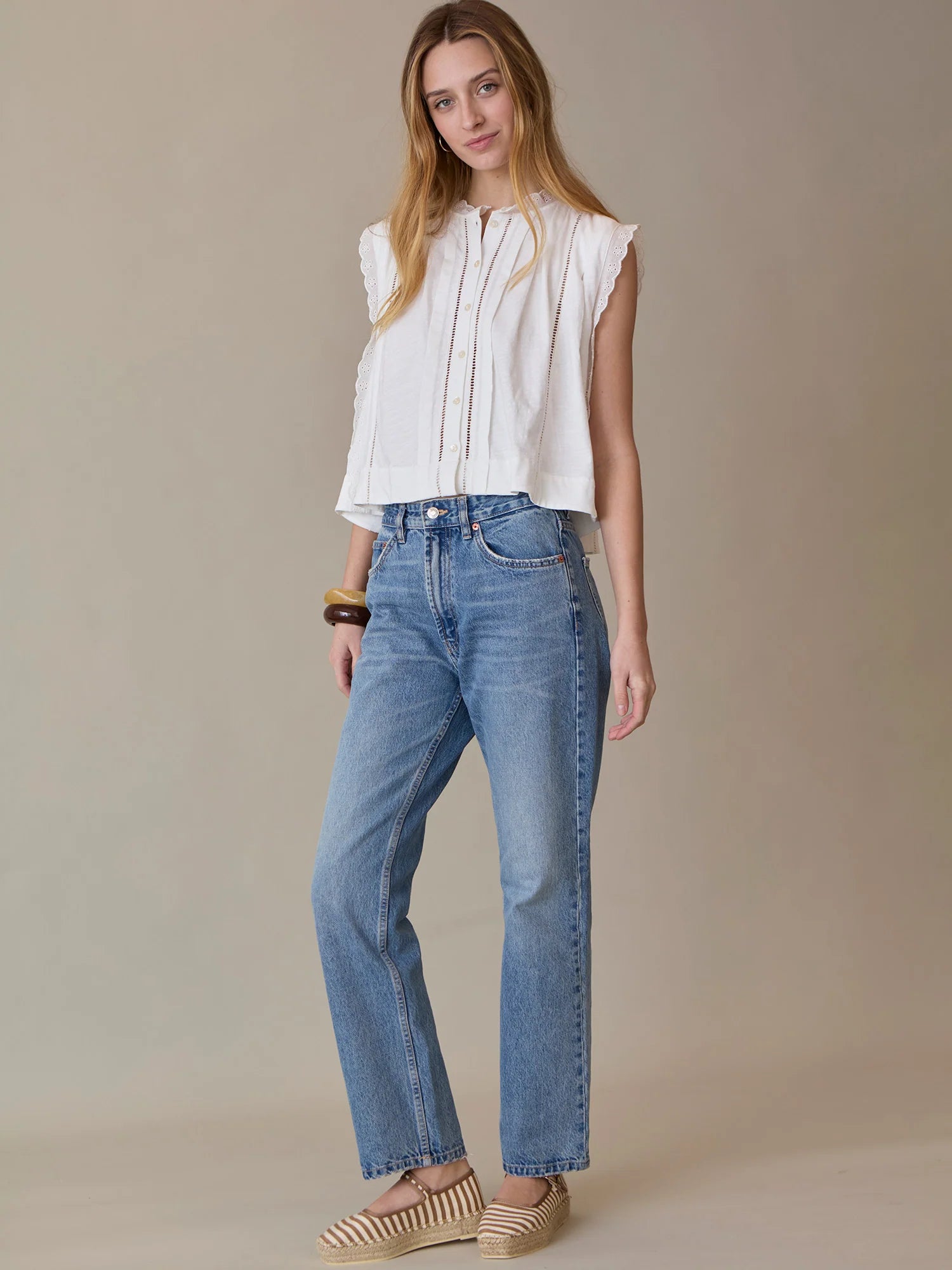 • Eyelet woven trim at neckline and armhole